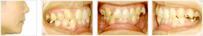 主訴/出っ歯 診断名/叢生を伴うClassII不正咬合 初診時年齢/27歳 治療/全体矯正(上下小臼歯抜歯) 治療法/上下顎裏側の装置 治療期間/1年9ヶ月