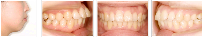 主訴/物が咬みにくい 診断名/開咬および叢生を伴うClassI不正咬合 初診時年齢/26歳 治療/全体矯正(上下小臼歯抜歯) 治療法/上下顎裏側の装置 治療期間/2年